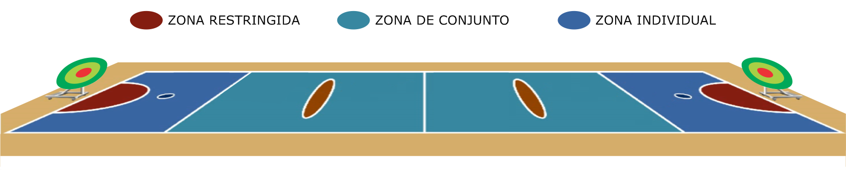 El arbitraje está a cargo de dos jueces de cancha y uno de mesa.